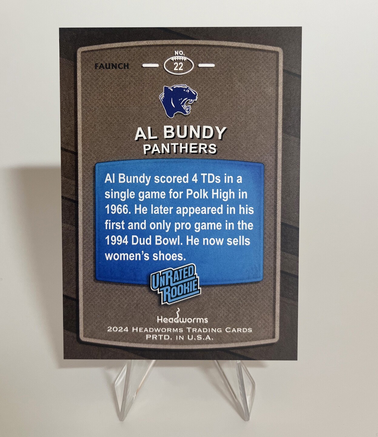 Al Bundy scored 4 touchdowns in one game for Polk High. Now forever immortalized in this epic Headworms Faunch card.